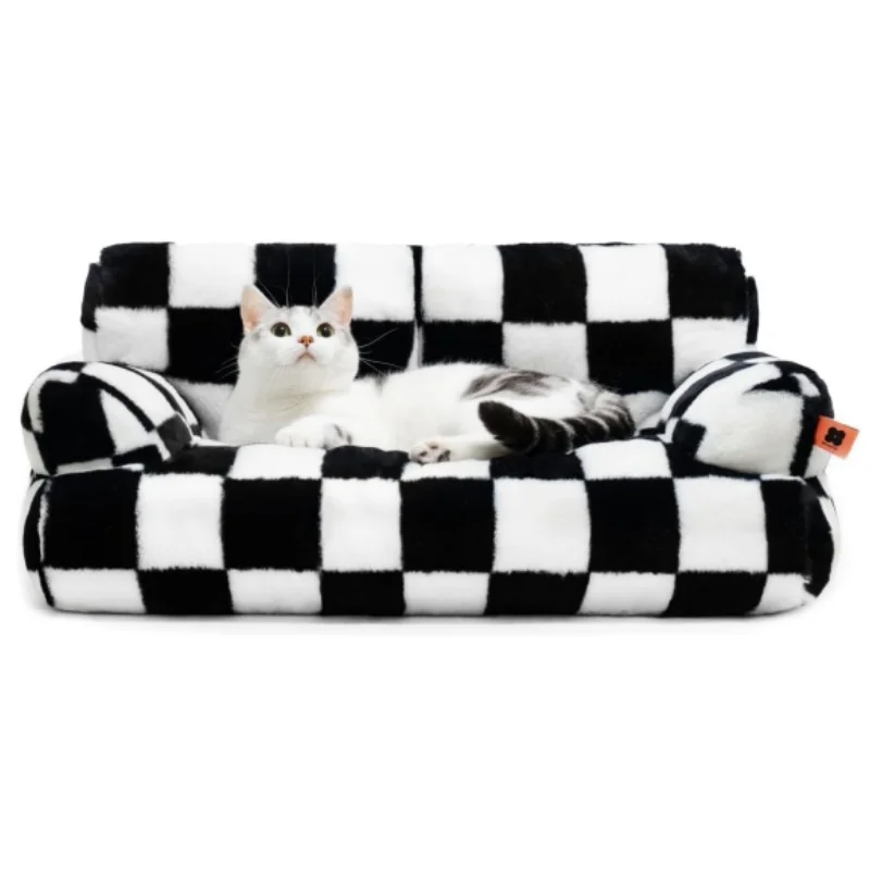 Mewoofun Pet Couch Bed 26×19×13 Inch Washable Cat Beds for Medium Small Dogs Cat up to 25 lbs Fluffy Cat Couch Black White